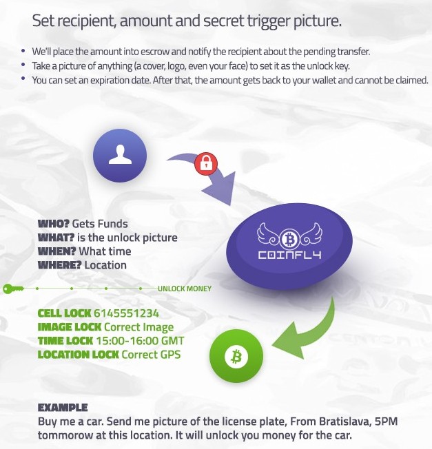 By using images and cryptographic codes CoinFly creates the possibility of covert codes as locking mechanisms. The resulting method is the only image based anonymous and covert value transference system in the world.